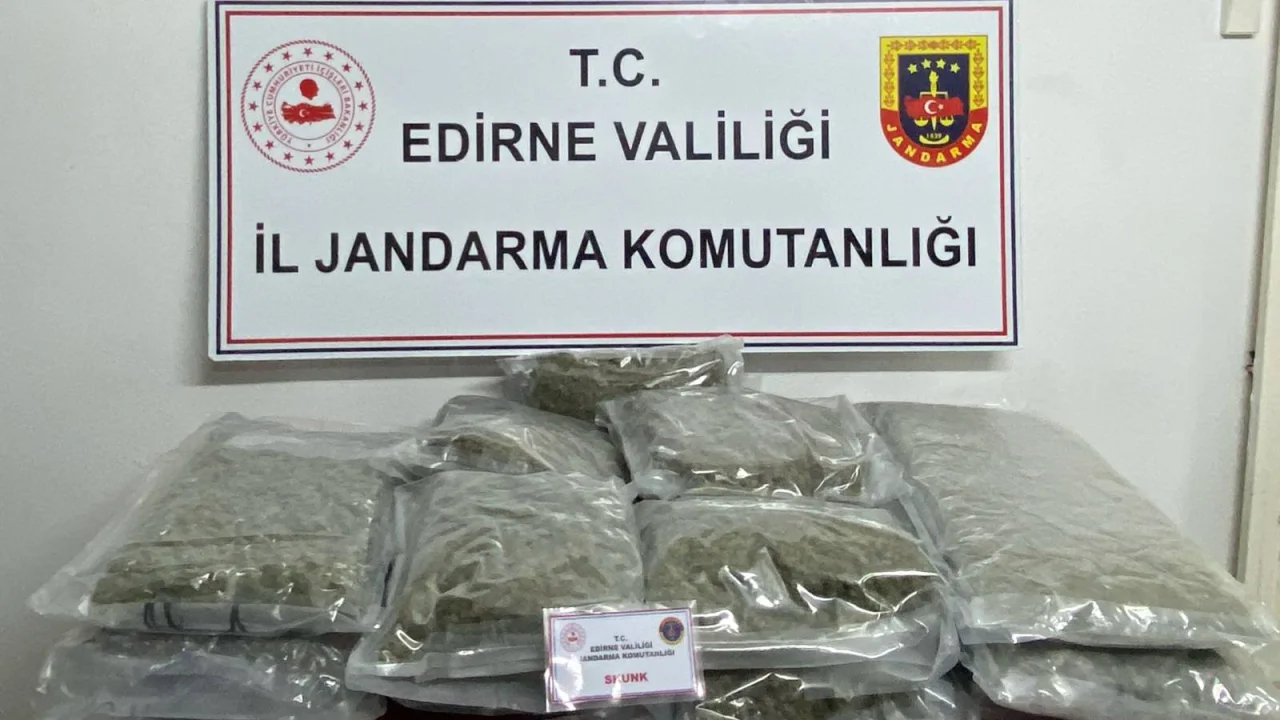 EDİRNE'de durdurulan araçta 16,5 kilo skunk ele geçirildi, sürücü gözaltına alındı.