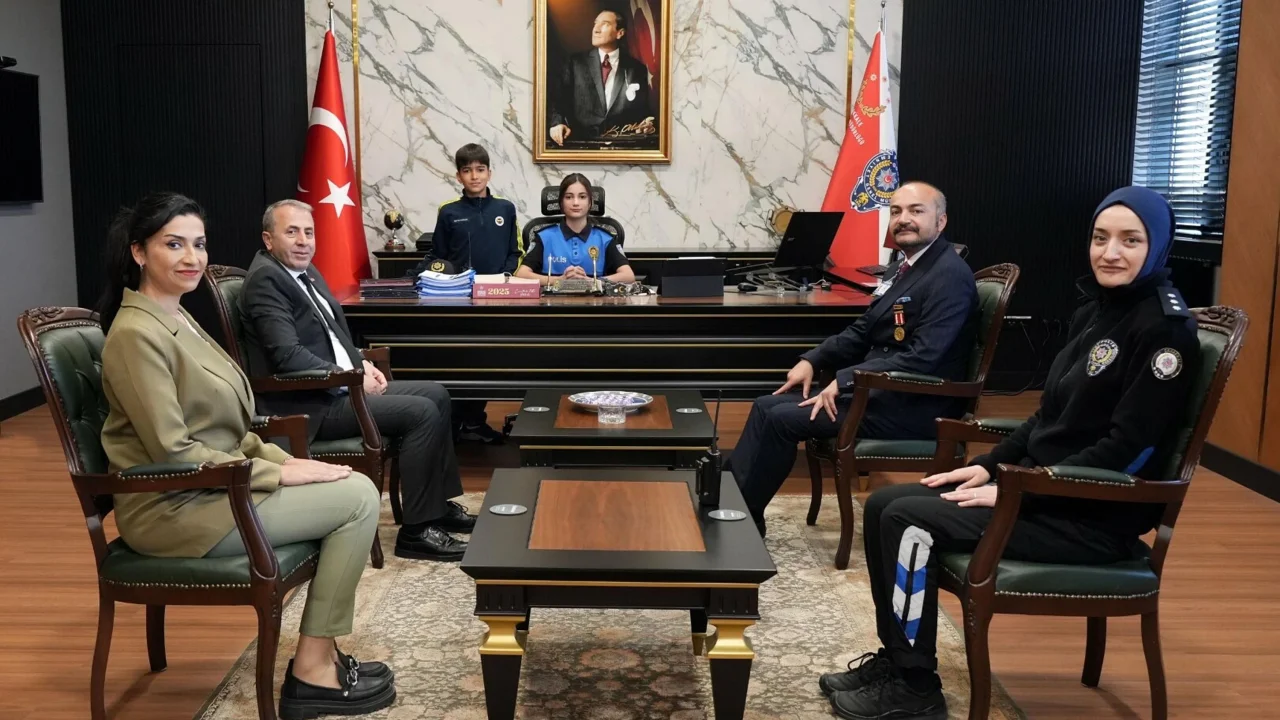 Kentte 23 Nisan Ulusal Egemenlik ve Çocuk Bayramı çeşitli etkinliklerle kutlandı. Bu kapsamda İl Emniyet Müdürü Kenan Kurt, koltuğunu Gazi Polis Memuru Hasan Hüseyin Korkut’un kızı Zeynep Berna Korkut’a devretti. Korkut, merkez ve bağlı istasyonlara telsizle anons ederek personele görevlerinde kolaylıklar dileyip, Çocuk Şube ve Toplum Destekli Polislik Şube Müdürlüklerine talimatlar verdi. İl Emniyet Müdürümüz Sayın Kenan KURT “Bugün görevimi Sayın Müdürüme devretmekten dolayı çok mutluyum. Çünkü onların isteyip de başaramayacağı hiçbir şey yok. Biliyoruz ki Türkiye Cumhuriyeti onların azmi ve çalışkanlığıyla birlikte daha ileriye gidecektir” dedi.