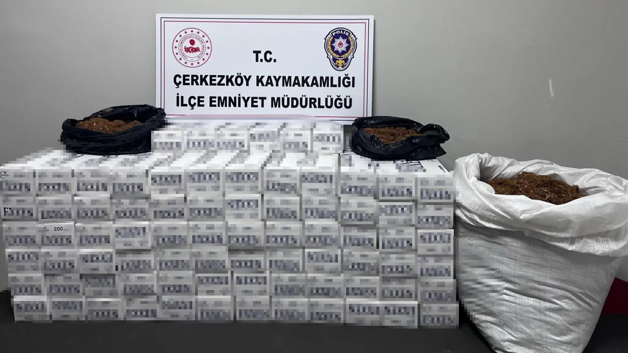 TEKİRDAĞ'ın Çerkezköy ilçesinde polisin durdurup arama yaptığı araçta kaçak tütün ile makaron ele geçirildi.
