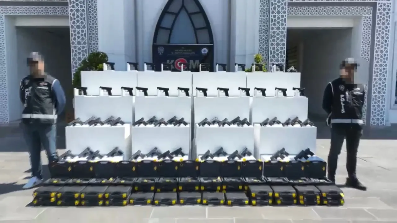 KOCAELİ’de polis ekipleri tarafından durdurulan minibüste 60 tabanca, 60 silah kutusu, 120 şarjör, 120 harbi (fırça) ve 120 kabza aparatı ele geçirildi.