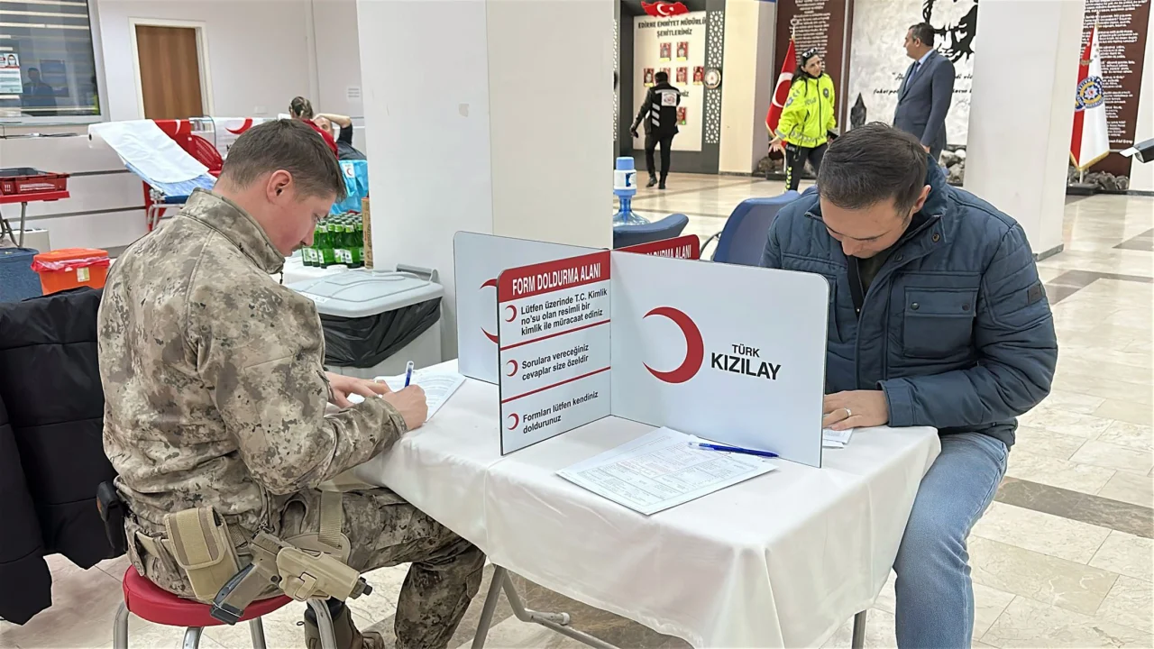 İl Emniyet Müdürlüğü'nde gerçekleştirilen kan bağış kampanyasına, çok sayıda polis katılarak destek verdi. Edirne İl Emniyet Müdürü Onur Karaburun da, müdürlük bünyesinde Kızılay tarafından kurulan kan bağışı alanına gelerek incelemede bulundu. Karaburun, polisin hayatın her alanında yer almasının ve kan bağışında bulunmasının önemine vurgu yaptı. Karaburun, "Türk Polis Teşkilatı kuruluşunun 180. yıl dönümü etkinlikleri çerçevesinde bugün Edirne Emniyet Müdürlüğümüz içerisinde Kızılay'ımıza kan bağış etkinliğimizi düzenledik. Gerçekten personelimizin yoğun bir katılımı hatta dışarıdan sosyal medya takipçilerimizden, vatandaşlarımızdan yoğun bir katılım oldu. Bu noktada hem personelime hem de duyarlılık gösteren vatandaşlarımıza teşekkürlerimi arz ediyorum. Emniyet teşkilatı sosyal hayatın içerisinde yeri başka türlü ikame edilemeyecek bir kurumumuz. Kan ihtiyacı da sağlık yönünden başka türlü ikame edilemeyecek bir şey. Biz her polis haftasında mutlaka böyle bir faaliyetin içinde olmak istiyoruz. Bu şekilde de personelimizden destek alması kan bağışının bizleri mutlu ediyor. Bütün vatandaşlarımızı, polis haftası dolayısıyla yapacağımız etkinliklere davet ediyorum" dedi.