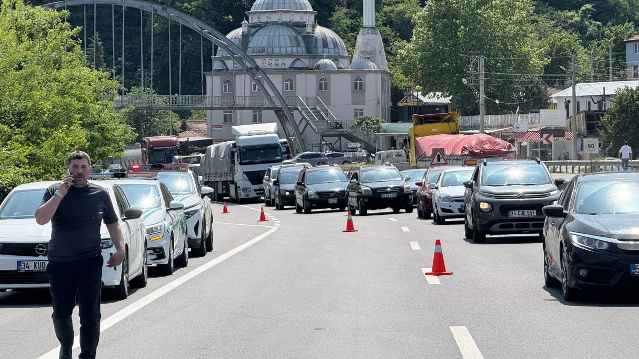Sakarya yönünde uzun araç kuyrukları oluşan yolda ulaşım, araçların kaldırılmasının ardından yaklaşık yarım saat sonra yeniden normale döndü.