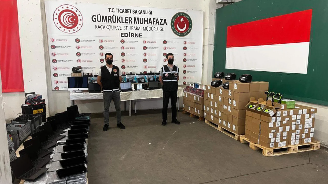 Edirne Gümrük Muhafaza Kaçakçılık ve İstihbarat Müdürlüğü ekipleri, Kapıkule ve Hamzabeyli sınır kapılarında 3 ayrı kaçakçılık operasyonu düzenledi. Kapıkule Sınır Kapısı'nda, yurda giriş yapmak üzere gelen TIR, şüpheli görülerek 'kırmızı hatta' aranmaya alındı. Ekipler, yaptıkları aramada, çeşitli eşyalarla doldurulan dorsede, faturasız ve belgesiz 228 dizüstü bilgisayar, 3 masaüstü bilgisayar, 150 barkod yazıcı, 150 barkod okuyucu, 20 wifi ve 4 kameralı kamera sistemi, 245 şarj adaptörü, 7 telsiz ve ekipmanı, 66 çeşitli eşya ele geçirildi.