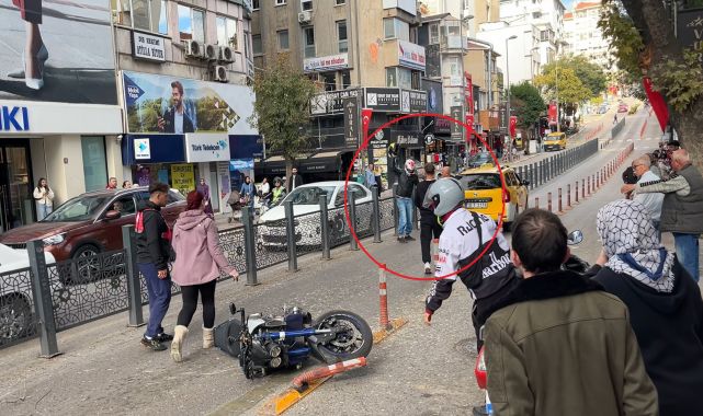 BALIKESİR'de taksinin çarptığı motosiklet devrildi. Kaza sonrası sürücülerin yumruklu kavgası kameraya yansıdı.Kaza...