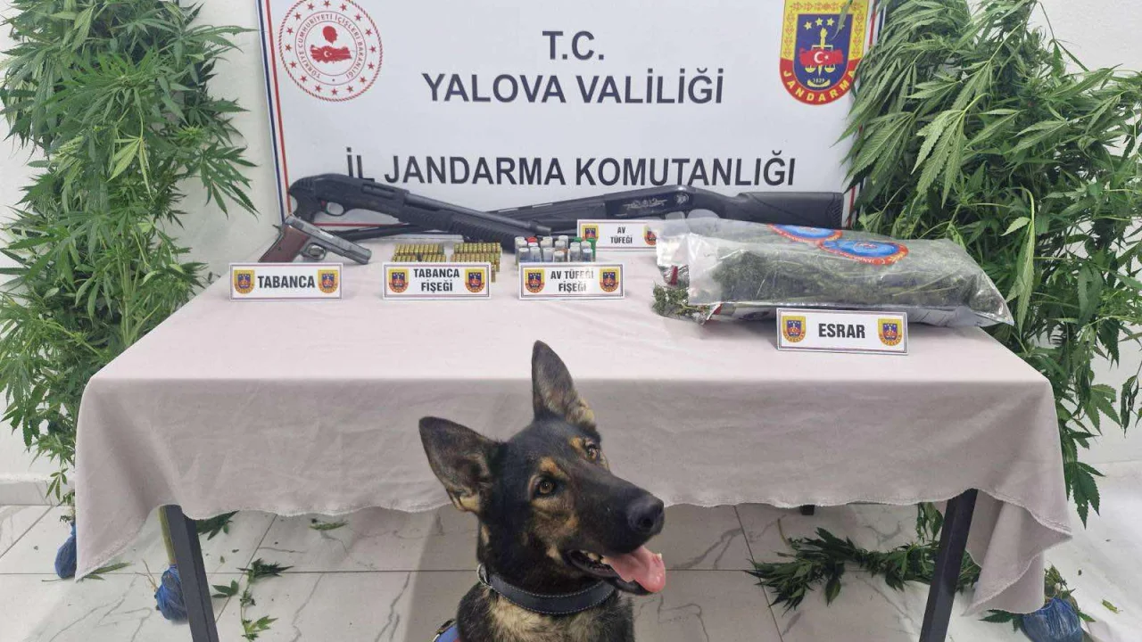 İl Jandarma Komutanlığı ekipleri, D.Ö. ve G.Ş. isimli şüphelilerin ormanda yetiştirdikleri kenevir bitkisini kubar esrar haline getirip satacakları ihbarı aldı. Narkotik Suçlarla Mücadele Şube Müdürlüğü ile Altınova İlçe Jandarma Komutanlığı ekipleri, şüphelileri, adreslerine düzenlediği operasyonla yakalayıp, gözaltına aldı. Şüphelilerin ikametlerinde ekiplerin aramalarında, 1 kilo 473 gram kubar esrar, 4 kök kenevir bitkisi, ruhsatsız tabanca, 2 ruhsatsız av tüfeği ve 240 fişek ele geçirildi.