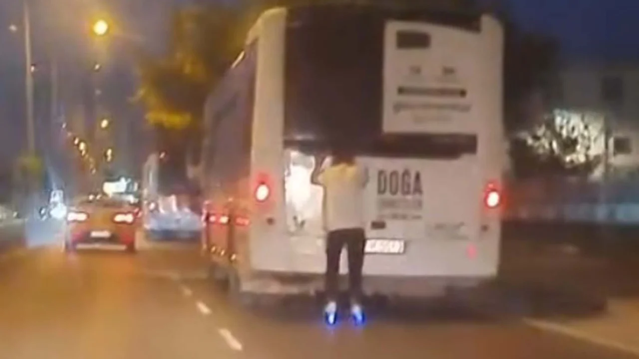 Olay, dün saat 22.30 sıralarında Atatürk Caddesi'nde meydana geldi. Patenli bir genç, 17 H 0043 plakalı özel halk otobüsünün arkasına tutunarak yolculuk yaptı. Kendi canını ve trafiği tehlikeye sokan patenli genç, bir süre sonra tutunduğu otobüsü bırakarak, yola devam etti. O anlar, başka bir sürücü tarafından cep telefonuyla kaydedildi.
