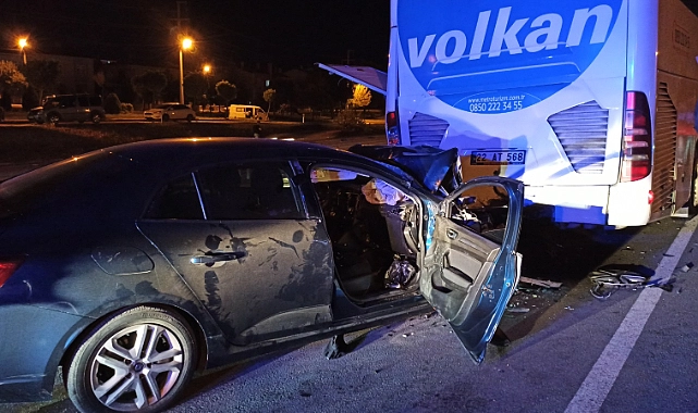 Olay, Keşan ilçesinde meydana geldi. Edinilen bilgilere göre, İstanbul'dan Çanakkale'ye giden Uğur Ö. idaresindeki 22 UC 020 plakalı otomobil, H.D. yönetimindeki 22 AT 568 plakalı otobüse arkadan çarptı. Meydana gelen kazada sürücü Uğur Ö. ile yanında yolcu olarak bulunan Özgür K. ağır yaralandı.