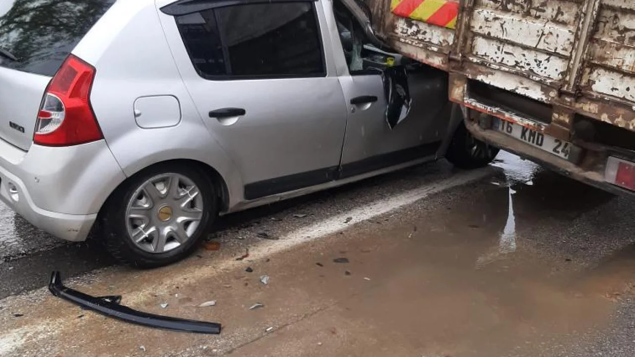 Kaza, saat 12.30 sıralarında, kırsal Yeniceköy Mahallesi Fatih Sultan Mehmet Bulvarı'nda meydana geldi. Yağış nedeniyle kayganlaşan yolda Şaban Y.'nin direksiyon kontrolünü yitirdiği 10 AGA 923 plakalı otomobil, yol kenarında park halindeki 16 KMD 24 plakalı kamyona arkadan çarptı. Yaralanan sürücü Şaban Y., ihbar üzerine olay yerine sevk edilen ambulansla kaldırıldığı İnegöl Devlet Hastanesi’nde tedaviye alındı.