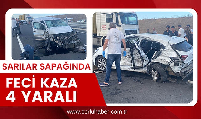 Olay, Çorlu ilçesi Çorlu-Ergene çevre yolu Sarılar Mahallesi çıkış sapağında meydana geldi. Edinilen bilgilere göre, 07 BGB 230 plakalı otomobiliyle çevre yolunda ilerleyen Evren D. Sarılar sapağından çıkmaktan son anda vazgeçerek Süleymanpaşa istikametine ilerlemek istedi. Bu sırada Süleymanpaşa istikametine seyreden Hasan Can D. yönetimindeki 16 BFT 110 plakalı hafif ticari araçla çarpıştı. Meydana gelen kazada araçlar hurdaya dönerken Evren D., Hasan Can D., Kübra S. ve Yeşim G. yaralandı.