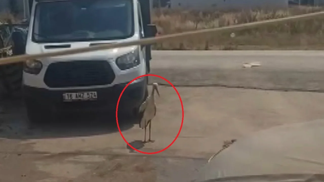 BURSA'nın İnegöl ilçesinde Hüseyin Kuzu, sıcaktan bunalıp evinin önündeki gölgeye sığınan leyleği, hortumla su sıkarak serinletti. O anlar, cep telefonu kamerasına yansıdı.
