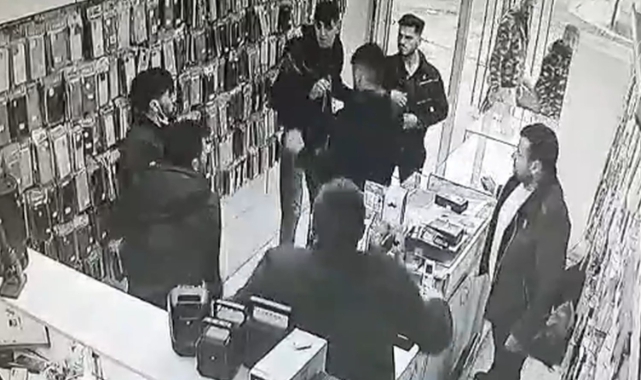 Sopa ve Sandalyelerle Saldırdılar! Cep Telefonu Dükkanındaki Kavga Kamerada