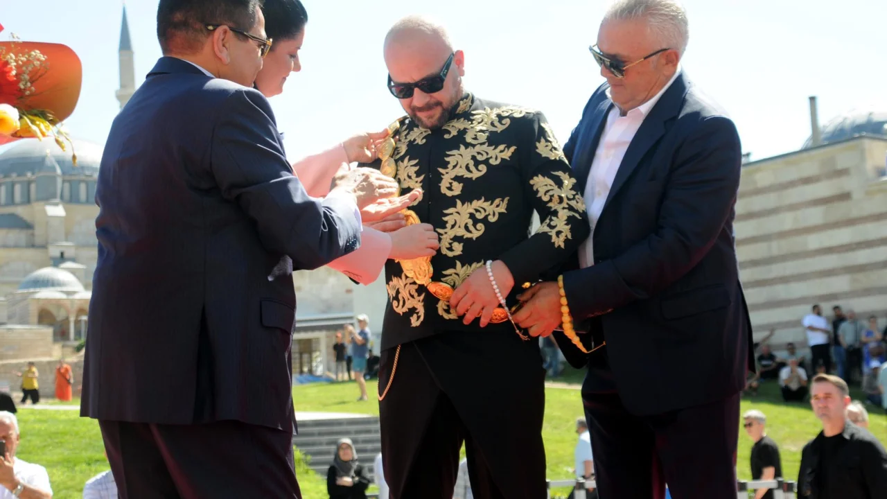 Edirne'de Sarayiçi Er Meydanı'nda, bugün saat 14.00'de, minik boyda pehlivanların çayıra çıkmasıyla başlayacak 664'üncü Tarihi Kırkpınar Yağlı Güreşleri'nde, gelenek haline gelen 'ağa karşılama' töreni yapıldı. UNESCO Dünya Kültür Mirası Listesi'ndeki tarihi Selimiye Camisi Meydanı önünde kurulan stantta, 664'üncü Kırkpınar Ağası Ufuk Özünlü'yü, Edirne Belediye Başkanı Filiz Gencan Akın ve Türkiye Geleneksel Güreşler Federasyonu (TGGF) Başkanı İbrahim Türkiş karşıladı. Heyete, Kırkpınar'ın 4 altın kemerli ağası Seyfettin Selim de eşlik etti. Kırkpınar'ın baş cazgırı Emin Ger'in anons ettiği Başkan Akın, Türkiş ile birlikte Kırkpınar Ağası Özünlü'yü kurulan stantta selamlayıp altın kemeri taktı, çiçek verdi.