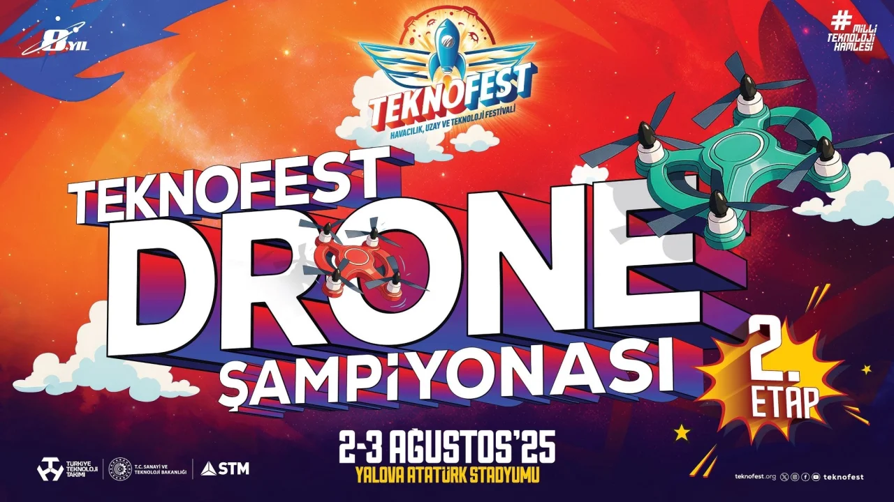 TEKNOFEST 2025 çerçevesinde, Savunma Teknolojileri Mühendislik ve Ticaret A.Ş. (STM) yürütücülüğünde gerçekleştirilen Drone Şampiyonası’nın 2’nci etabı, 2-3 Ağustos tarihlerinde Yalova Atatürk Stadyumu’nda düzenlenecek. Yalova Valiliği’nden yapılan açıklamaya göre, şampiyonada bireysel pilotlar yüksek hızlı FPV yarış dronlarıyla mücadele edecek. 182 başvuru arasından seçilen ve Kuzey Kıbrıs Türk Cumhuriyeti'nde (KKTC) düzenlenen 1’inci etabı başarıyla tamamlayan 13 farklı ilden 22 yarışmacı, Yalova’daki etaba katılmaya hak kazandı. Yarışlar yalnızca analog video iletim sistemiyle yapılacak ve katılımcılar; hız, zamanlama, çeviklik ve engel geçiş başarılarıyla değerlendirilecek.