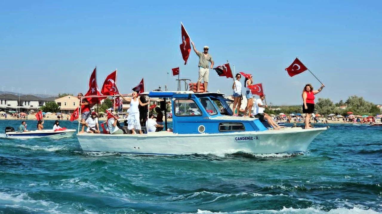 Edirne'nin Enez ilçesinde, Enez Amatör Denizciler ve Su Sporları Derneği tarafından her yıl geleneksel olarak düzenlenen '30 Ağustos Zafer Seyri', bu yıl da coşkuyla gerçekleştirildi. Yaklaşık 100 teknenin yer aldığı etkinlik, balıkçı barınağından başladı. Türk bayrakları ve Atatürk posterleriyle donatılan tekneler, marşlarla 2 kilometrelik sahil hattı boyunca ilerleyip sahildeki vatandaşları selamladı. Enez Kaymakamlığı, Enez Belediyesi ve Sahil Güvenlik Komutanlığı'nın destek verdiği etkinlikte, 30 Ağustos Zafer Bayramı, coşkuyla kutlandı.